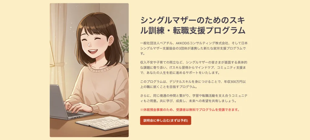 シングルマザーのためのスキル訓練・転職支援プログラム